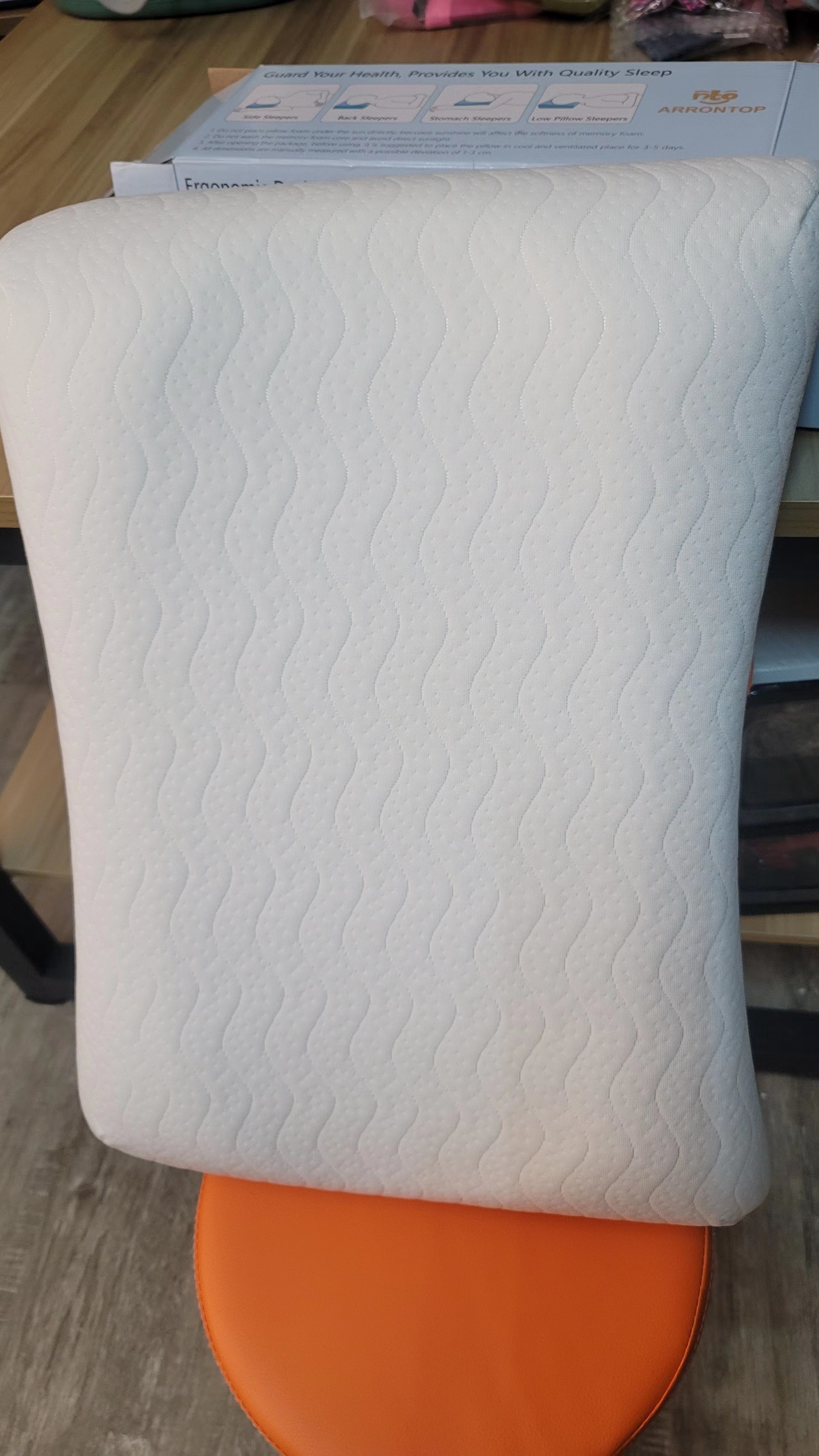 We use only the high quality form memory materials when filling our pillow for make sure it has low to no scent and won’t release harmful chemicals into your home. Rest easy knowing your pillow is back by our guarantee for great sleep. Any questions please send email to contact our customer care team at arrontopbrand@gmail.com.